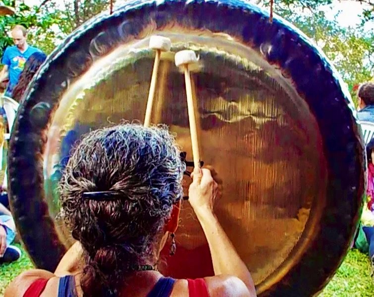 I have been played by the Gaia Earth Gong since 2009. From 2014 to the present, the gong and I have traveled and played for small and large groups, private individual sessions, weddings, inaugurations, fundraisers, art gallery openings, yoga classes and teacher trainings, retreat groups, conferences, ceremonies, and even a dinner party or two.