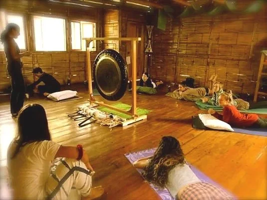 Here are a few photos of the gong and me playing for yogis here, there, and everywhere!
